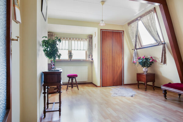 De tweede verdieping biedt plaats aan vier ruime slaapkamers en een complete badkamer voorzien van ligbad, wastafel en toilet. Een volwaardige woonetage waar elk gezinslid zijn eigen plek vindt.